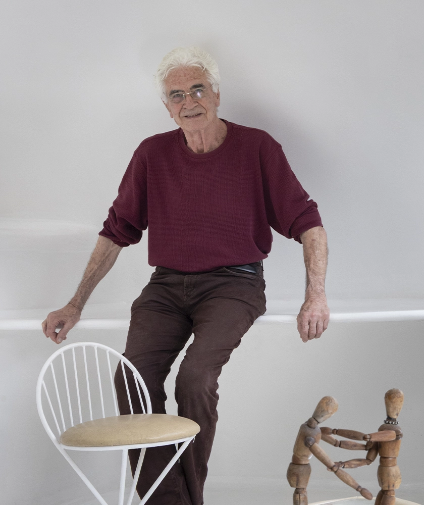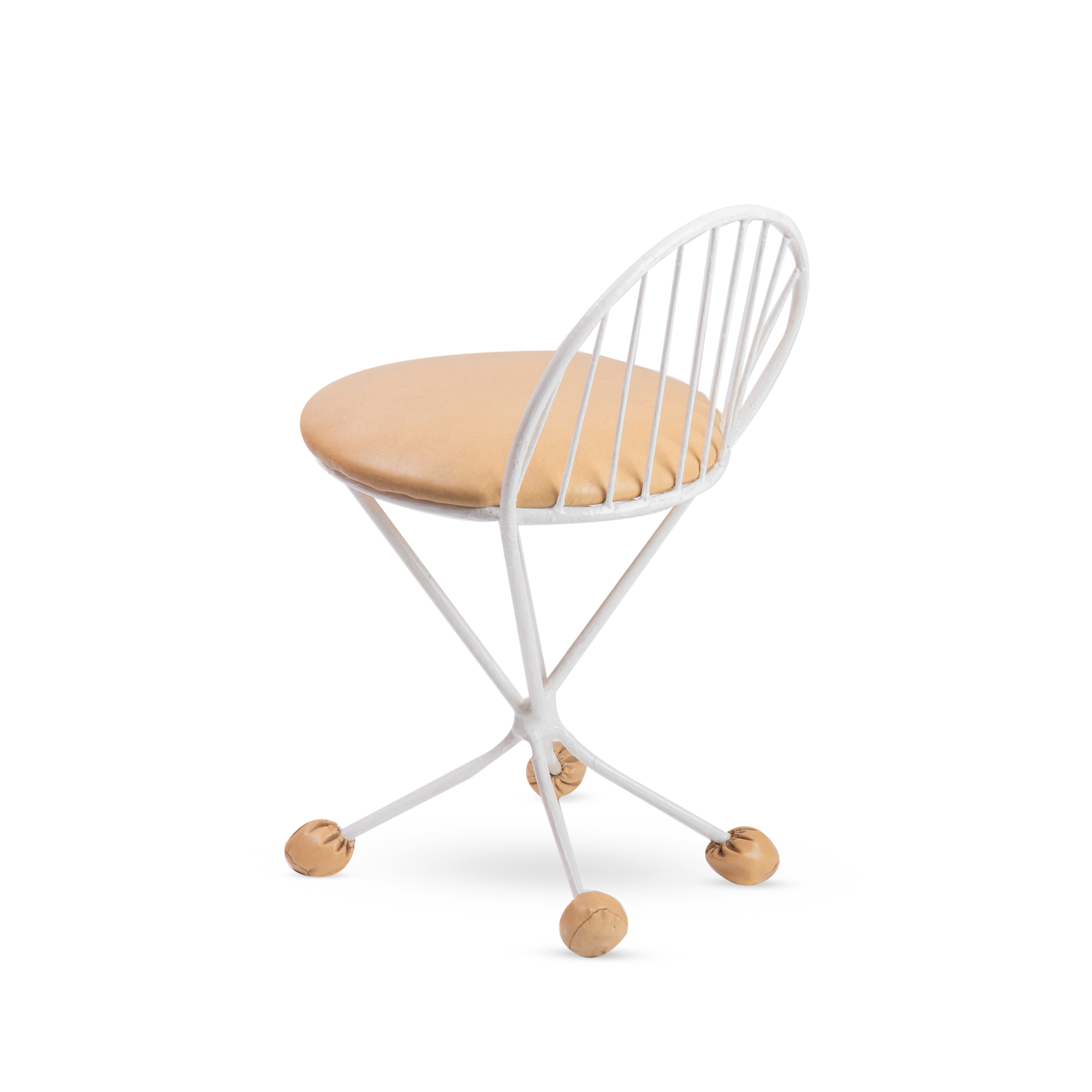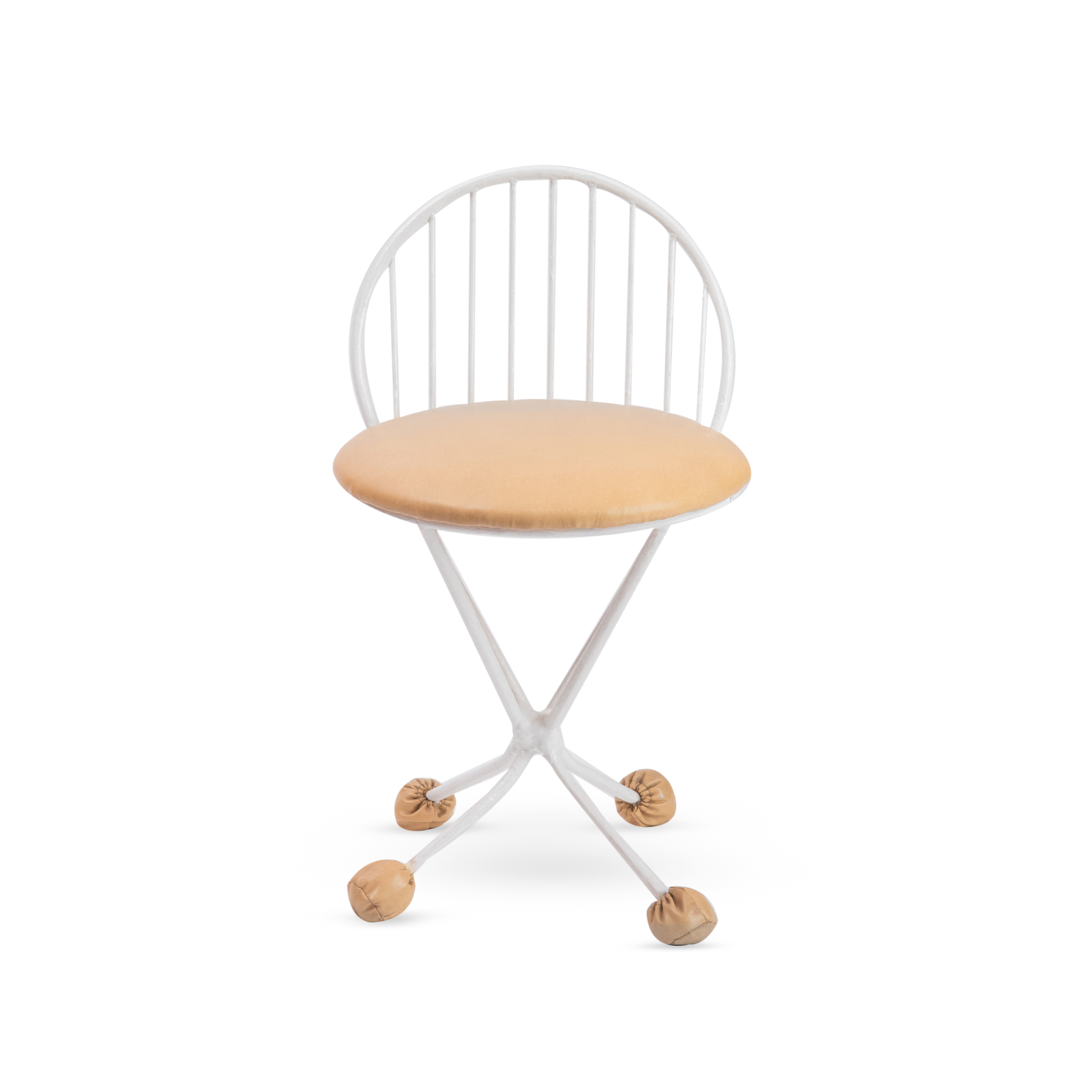 É nesse horizonte que surge a Cadeirinha — peça leve, de linhas depuradas e tonalidades claras, concebida em consonância com a escala e as demandas espaciais da casa. Orientada pelos mesmos princípios de funcionalidade e síntese que estruturam a arquitetura, a cadeira responde às exigências de um espaço de metragem reduzida, privilegiando praticidade, clareza construtiva e adequação dimensional.